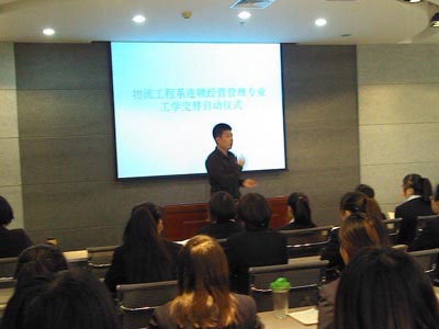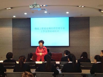 2013年10月28日上午,物流工程系举行了2012级连锁经营管理专业工学交替启动仪式,对2012级连锁经营专业学生进行实训动员。启动仪式由办公室姜莉莉主任主持,人人乐人力资源部张斌经理及系主任荣瑾、书记申杰,物流系、学工办田亚南主任、连锁经营管理专业负责人顾红静老师出席启动仪式。